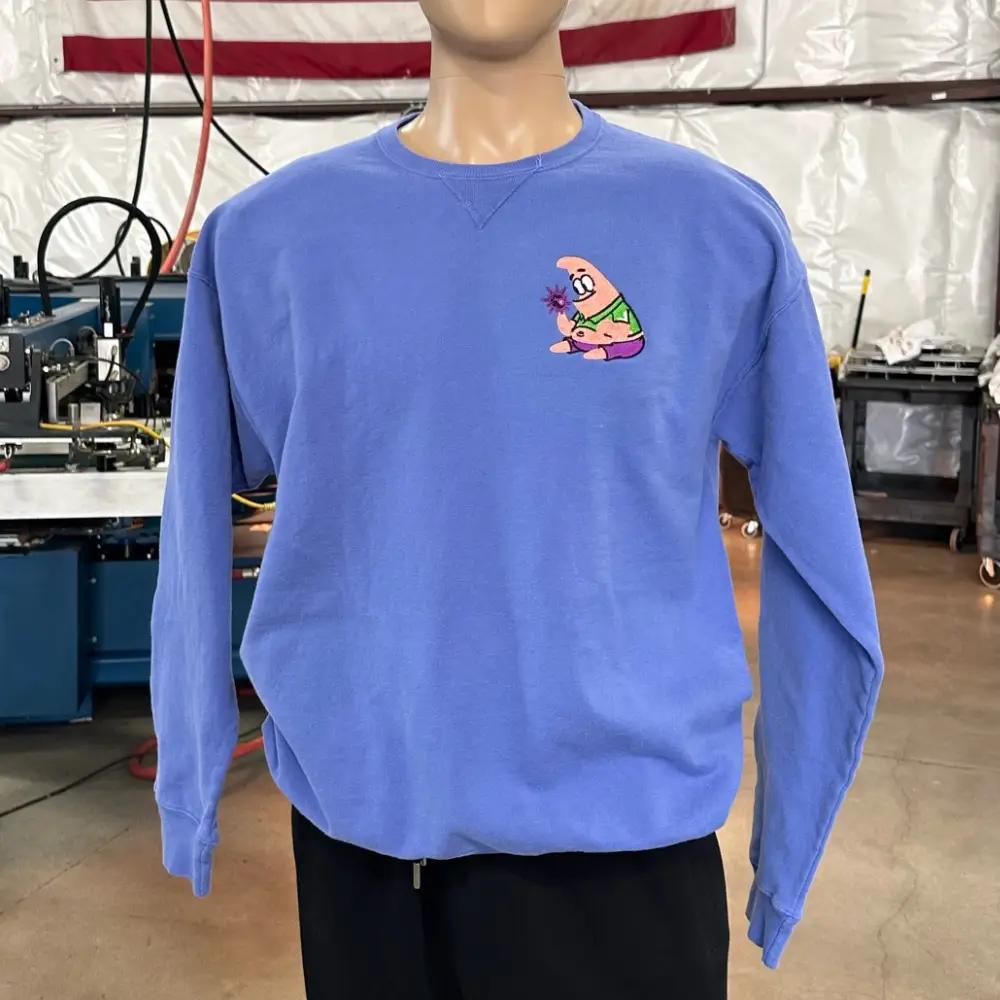 At Garment Decor, we’re always pushing the boundaries of apparel customization. Recently, we had the pleasure of custom embroidering Champion CD400 Garment-Dyed Crewneck Sweatshirts with a detailed design of Patrick Star, giving this popular character a new, premium look. Embroidery on crewnecks is unique; while many clients choose screen printing for such garments, this project shows how embroidery can provide a high-quality, textured alternative.