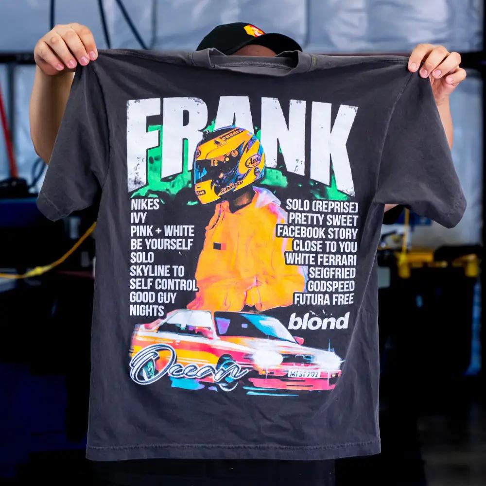 When Frank Ocean needed high-quality tour merchandise on a tight deadline, we were ready to deliver. Tasked with screen printing 800 t-shirts with an 8-color simulated process design, we turned to the Los Angeles Apparel 1801GD in black, ensuring a premium product that matched the artist’s vision. With just 3 business days to complete the order, we took extra measures to ensure the merchandise arrived at the venue on time. Here’s how we brought this project to life.